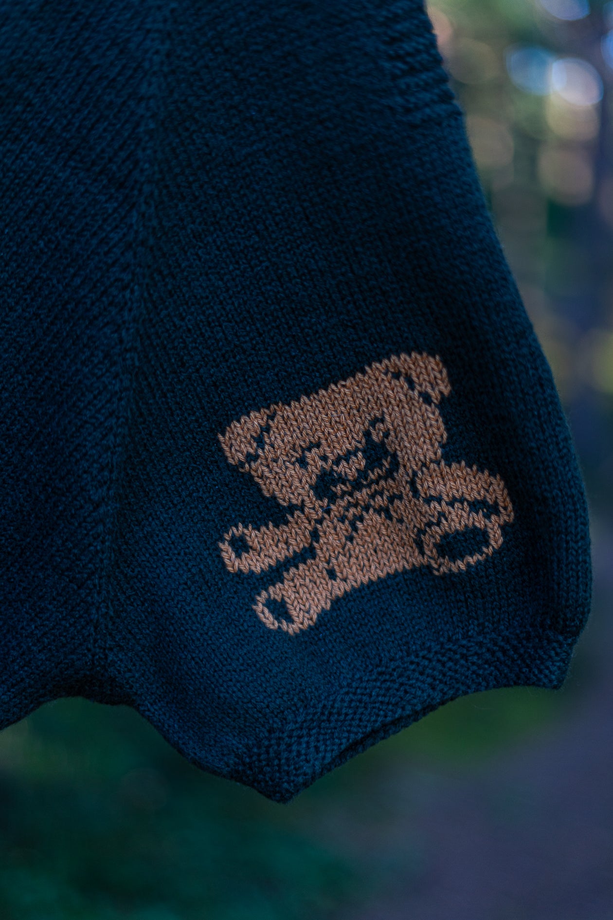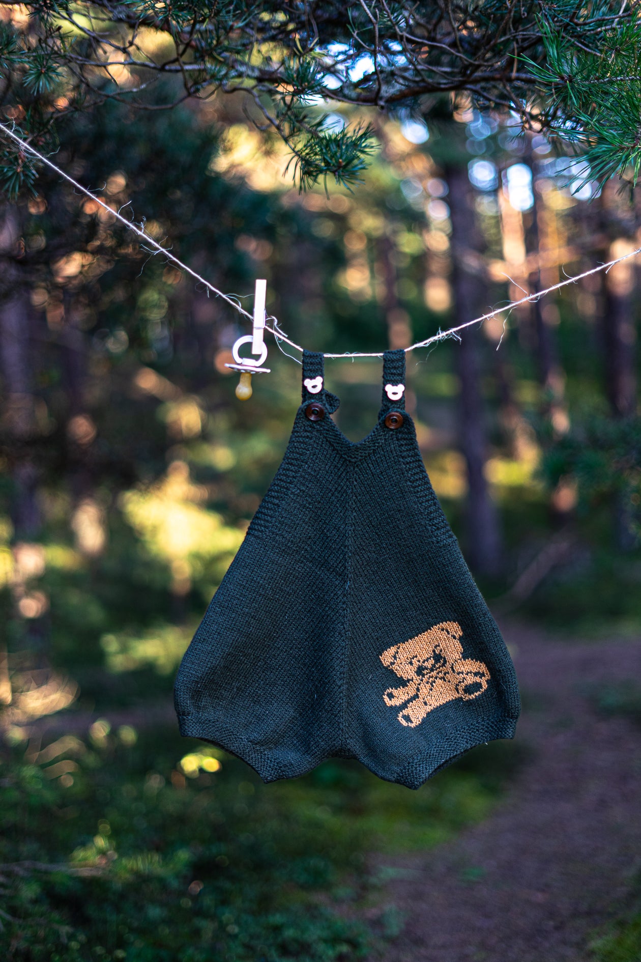 Mežā, kur mīt lācēni, radusies iedvesma šim īpašajam kombinezonam. Rokām darināts no dabīgas merino vilnas un kašmira dzijas, lai būtu īpaši elpojošs un maigs pret mazuļa ādu. Izšūtais lācēns tērpam piešķir siltu un rotaļīgu raksturu, padarot šo kombinezonu par unikālu un mīļu dāvanu pirmajiem dzīves mēnešiem. Darinājums vienā eksemplārā. Iesaiņots 100% kokvilnas maisiņā.